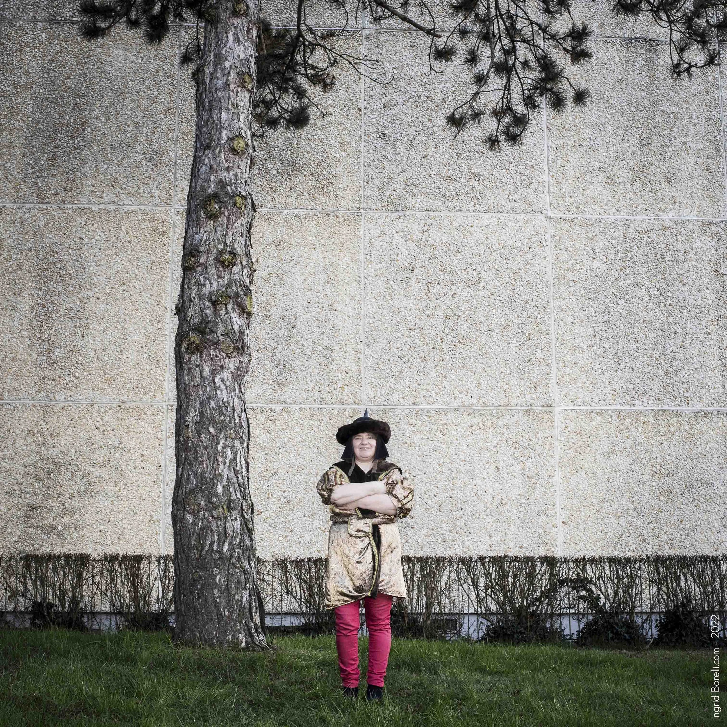 Des prises de vues en groupe dans l’espace public, avec la photographe Ingrid Borelli. En s’appuyant sur leur expérience, les participantes sont invitées à caractériser leur courage à travers deux éléments : une posture d’une part, et une parure parmi celles proposées d’autre part. S’inspirant de différentes imageries évoquant des actes de bravoure - de la chevalerie aux super héros.oïnes en passant par l’imagerie mythologique - les femmes prennent la pose dans une posture et une parure leur évoquant la puissance et le courage.