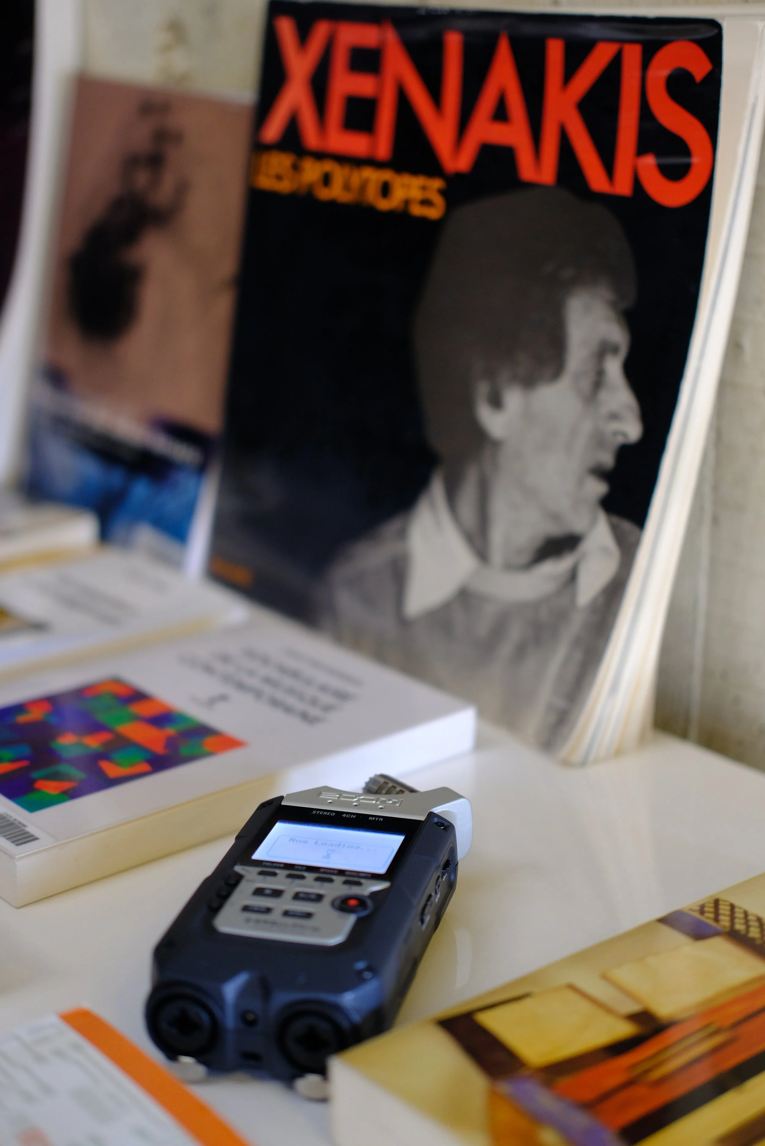 un pôle de ressources documentaires proposant une sélection d’ouvrages pour nourrir la réflexion étaient mis à disposition des équipes, notamment des livres sur la musicologie, sur la spatialisation du son, les écoutes intérieures, sur le compositeur Xannis Xenakis...
