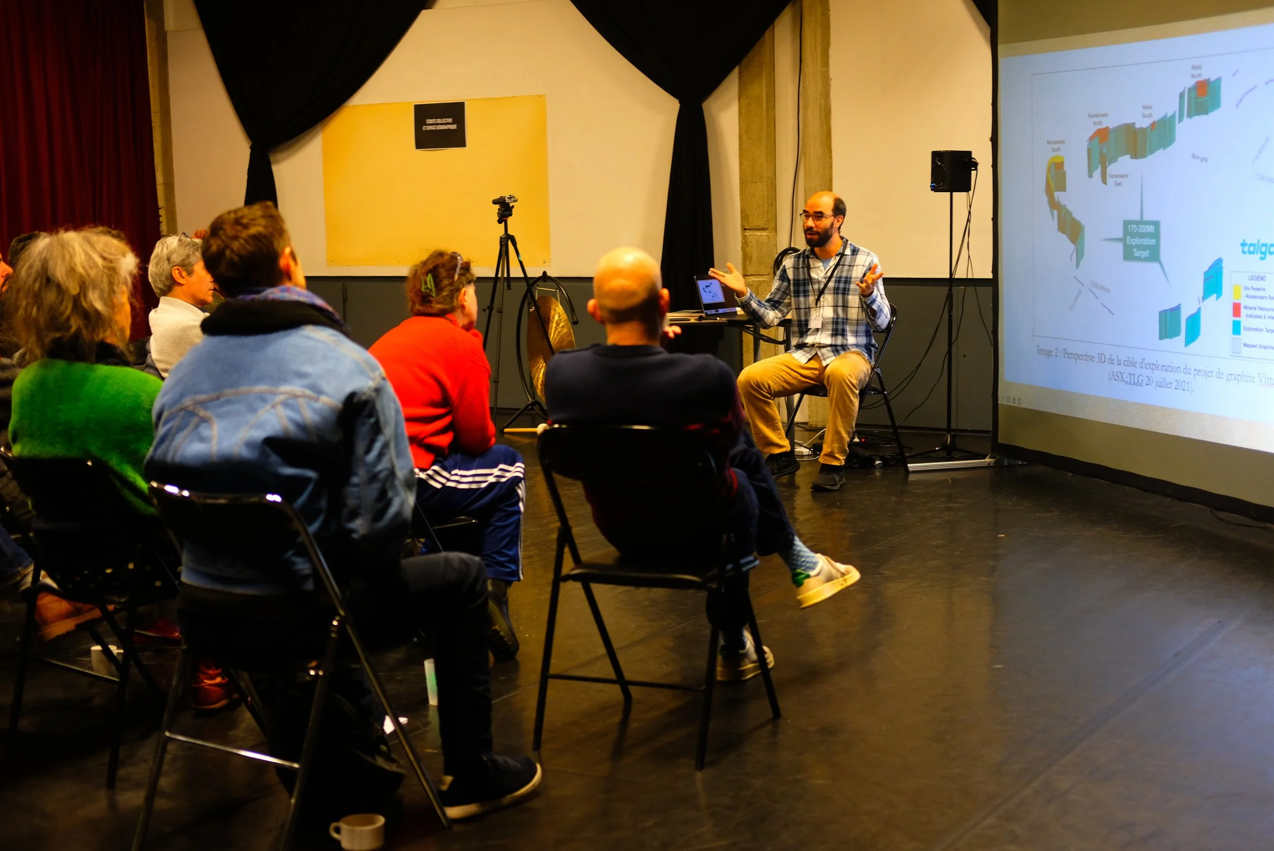 Yann Calbérac, géographe, a présenté son travail intitulé “Le son, point inouï des spatialités scéniques” en lien avec la thématique Écoutes intérieures et lâcher prise ;